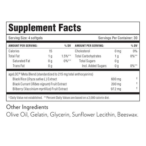 In a clinical study, subjects who took the ageLOC Meta anthocyanin blend and then ate a high-fat meal experience improved metabolic health and inflammatory responses, compared to those who ate a high-fat meal and took a placebo.